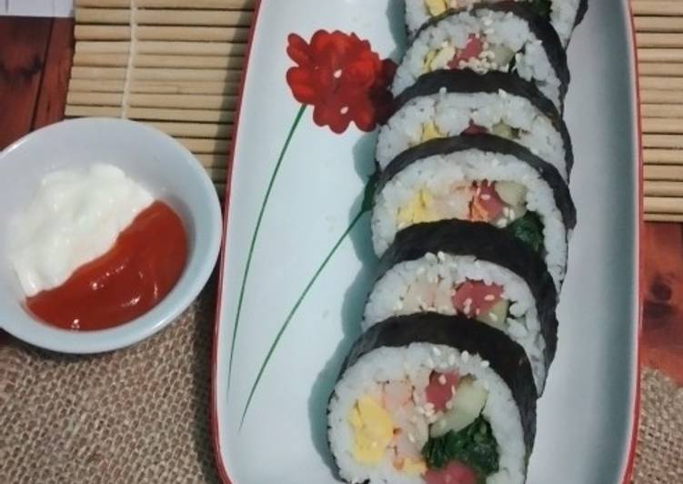 Carrot, eggs, garlic, ground beef, kim, rice, salt, sesame oil, skirt steak, soy sauce, spinach, sugar, vegetable oil, yellow pickled radish. (Korean Sushi, 김밥, Gim Bap, Gimbap, Gimbab, Gim Bab, Gimbop, Gim Bop, Gimbob, Gim Bob, Kim Bap, Kim Often referred to as Korean sushi, kimbap is a Korean dish consisting of seaweed (kim). The korean gimbap rice is not same like the rice for making sushi. Let the fresh cooked rice cool down for a while. You can have Gimbap korea using 10 ingredients and 5 steps. Here is how you achieve it.